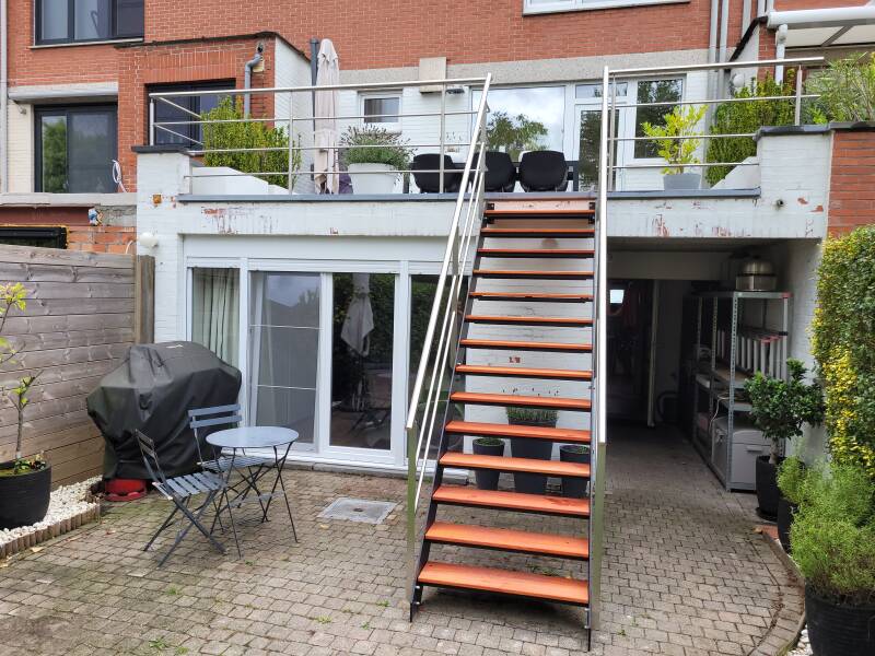 Buitentrap Belle etage woning, treden in Padouk. Realisatie met Meca