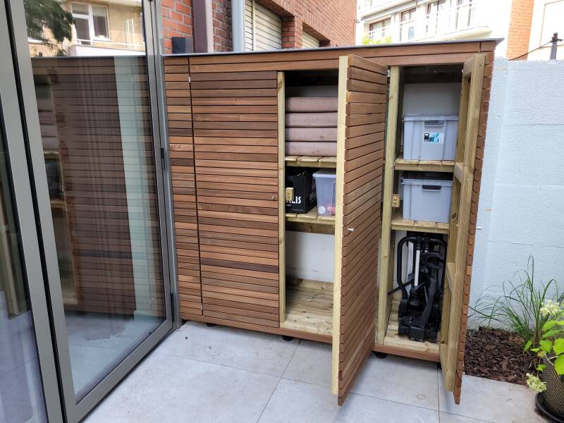 Tuinkast in geïmpregneerd naaldhout met afwerking in thermowood